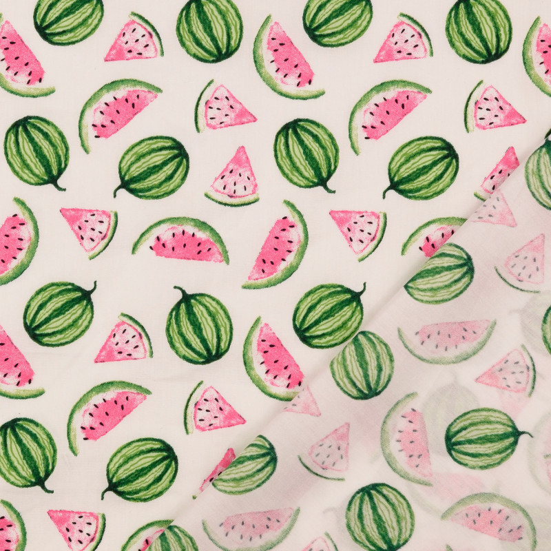 Diese tolle Baumwolle ist mit zuckersüssen Wassermelonen bedruckt. Ideal für Behelfsmasken, Bienenwachstücher oder andere Baumwollprojekte.