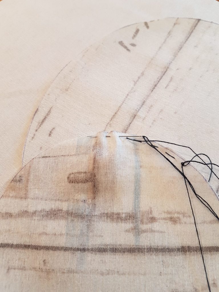 2. Entlang des Kreisrandes (ca. 0.5 cm vom Rand entfernt) rundum eine Heftnaht nähen.