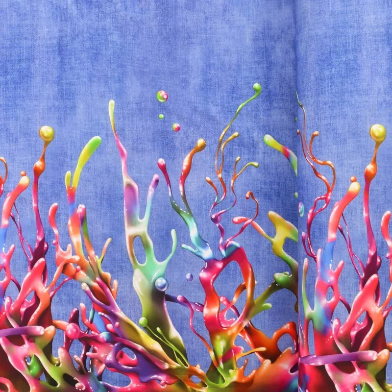 Glitzerpüppi Baumwolljersey - Farbspritzer Bordüre Jeans