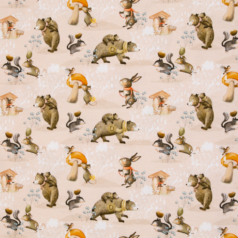 Dieser süsse Baumwolljersey ist ein Muss für alle Tierliebhaber*innen. Er lässt sich super zu T-Shirts, Oberteilen und Jäckchen verarbeiten.