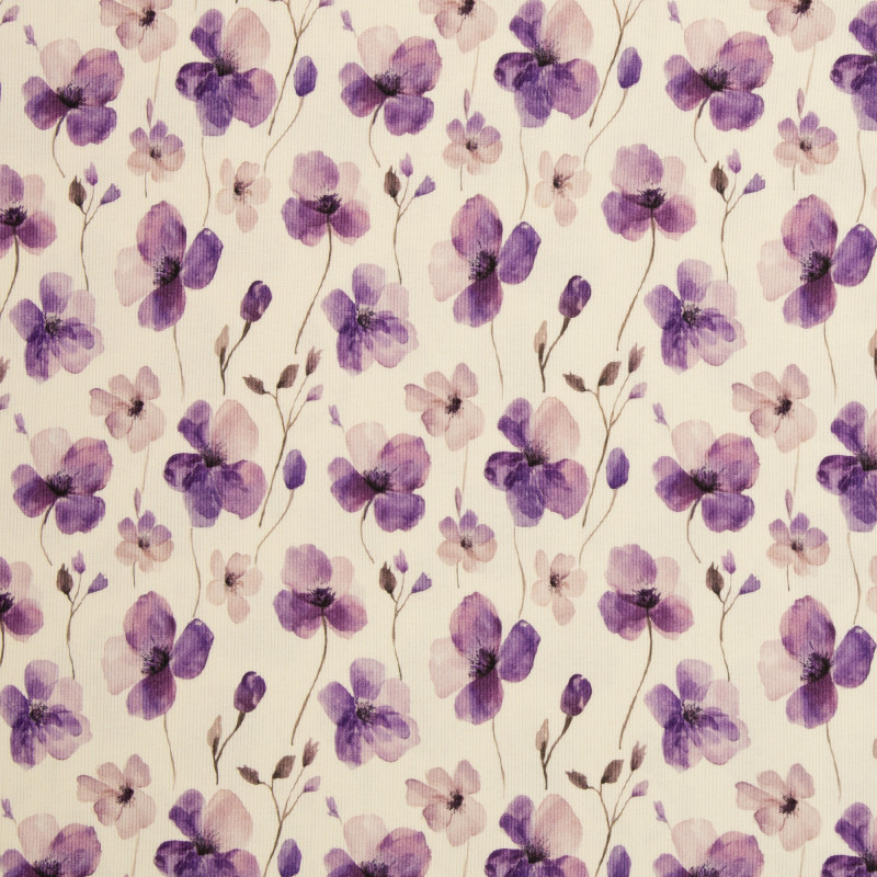 Hermine ist ein weicher Rippjersey mit feiner Struktur und modernen, floralen Designs.