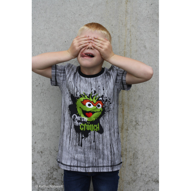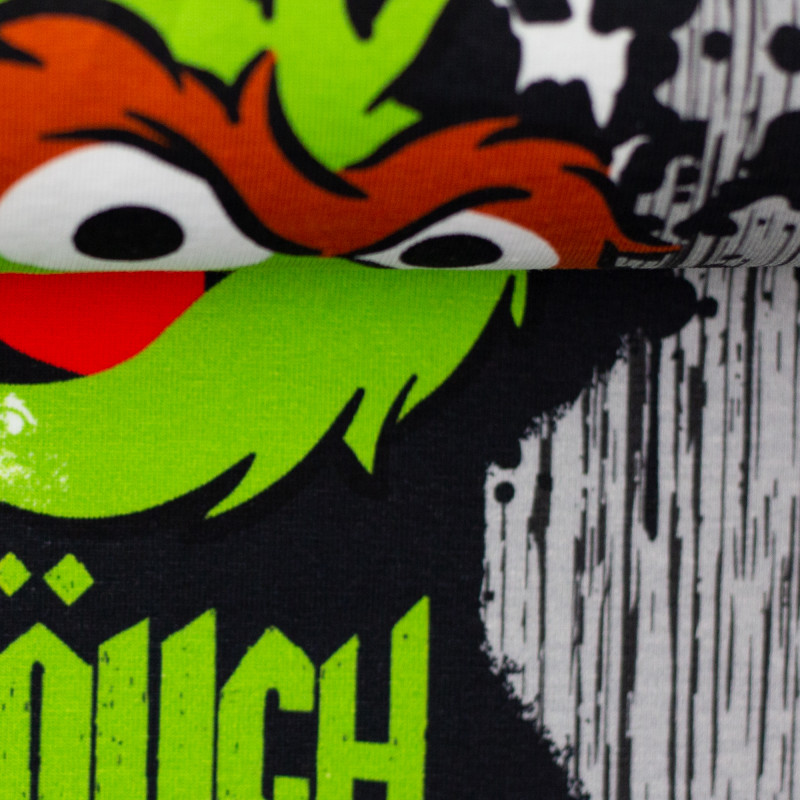 Wir haben vier tolle Panels und vier Allover-Designs für Euch! Die Panels sind ca. 75 cm hoch. Es gibt Oscar auf einem coolen Panel in Grau mit längs verlaufenden Strichen und Elmo als Rockstar auf einem smaragdfarbenen Hintergrund mit cooler Struktur. Die Motive sind jeweils ca. 21 cm hoch und das Hintergrundmuster erstreckt sich über die gesamte Stoffbreite: