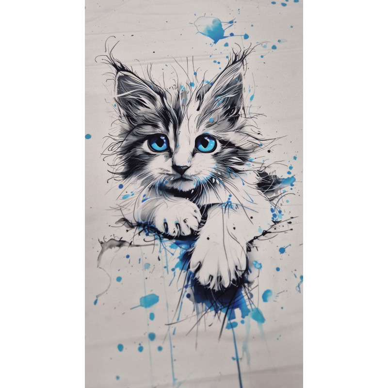 Jersey Panel Stoffkids - Katze weiss-petrol