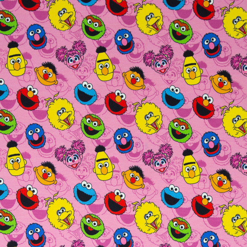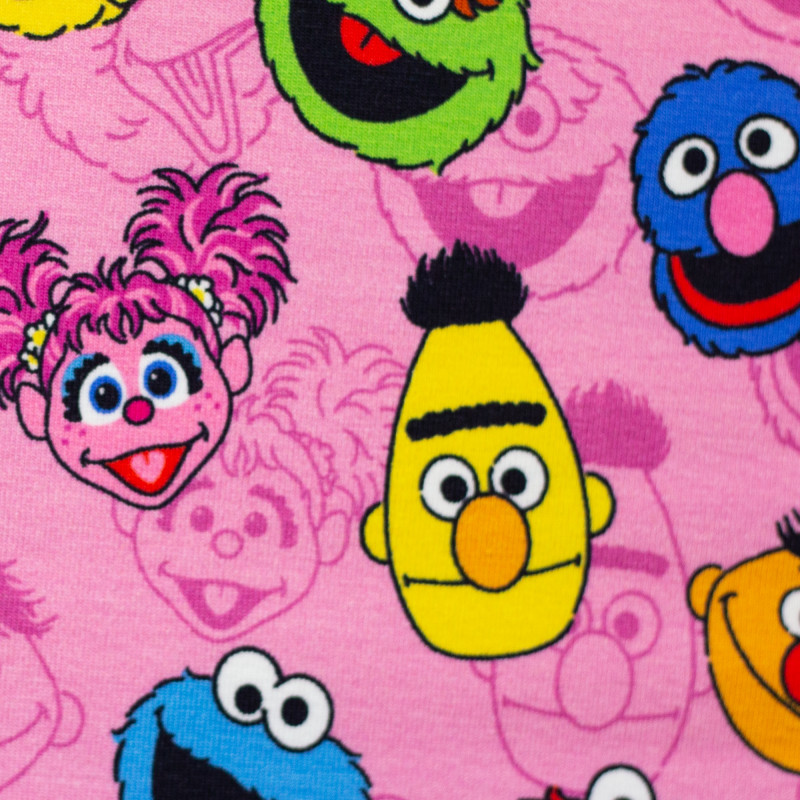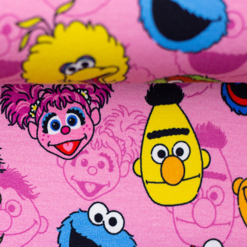 Baumwolljersey Kombi Sesamstrasse - Köpfe rosa