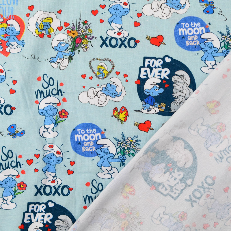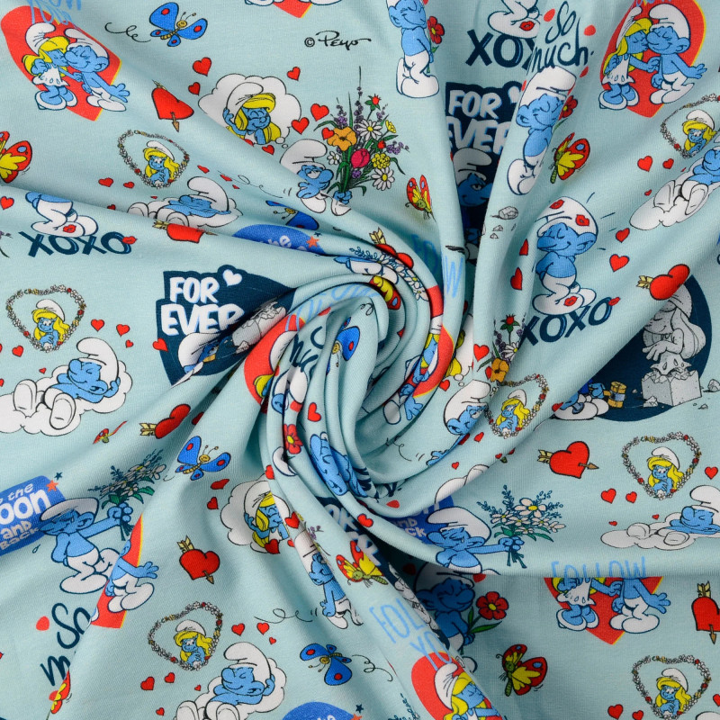 Dieser tolle Jersey ist ein Muss für jeden Schlümpfe-Fan. Er lässt sich super zu T-Shirts, Oberteilen und Jäckchen oder auch Pyjamas verarbeiten.