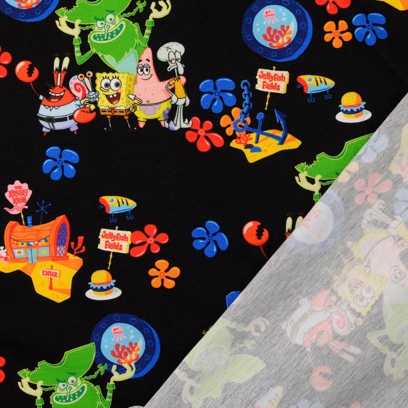Dieser tolle Jersey ist ein Muss für jeden Spongebob-Fan. Er lässt sich super zu T-Shirts, Oberteilen und Jäckchen oder auch Pyjamas verarbeiten.