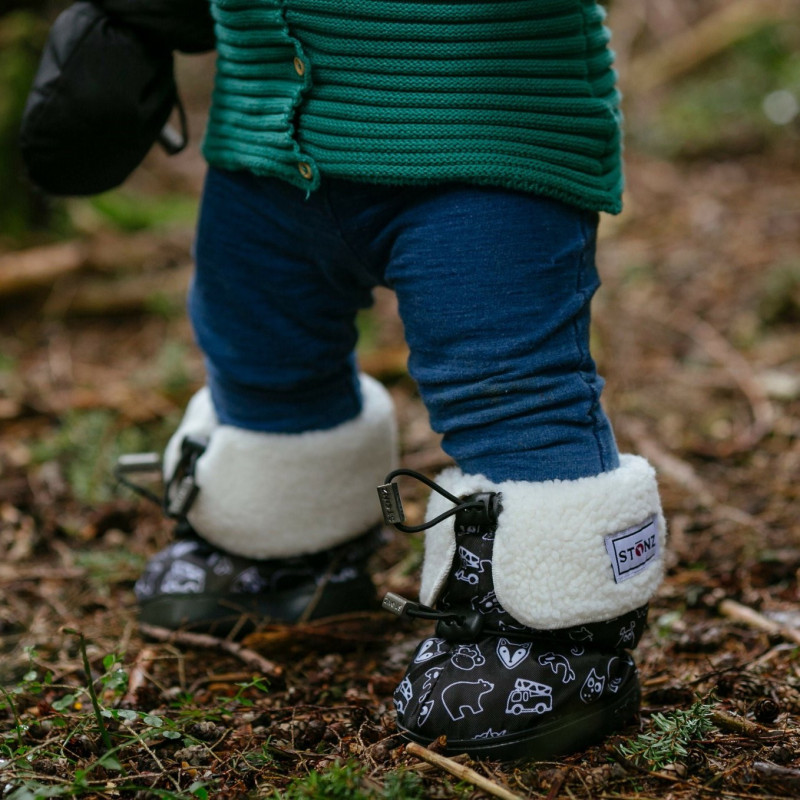 Vielseitiger Kleinkindschuh, der über Schuhe, Stonz Linerz, Finkli oder Barfuss getragen werden kann.