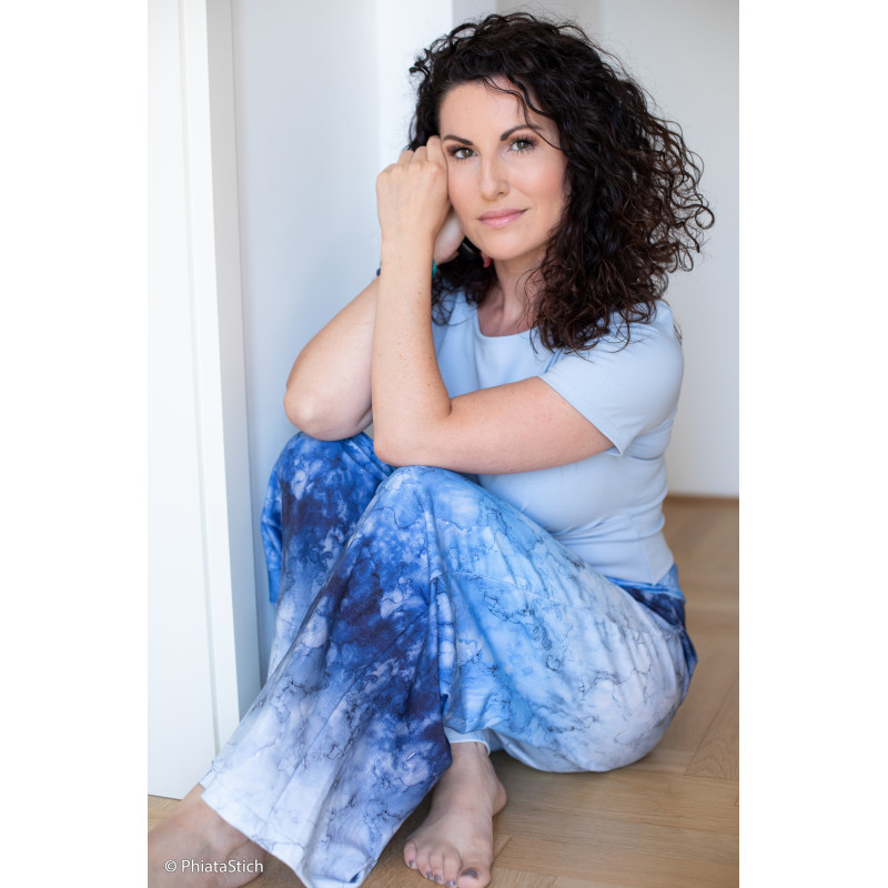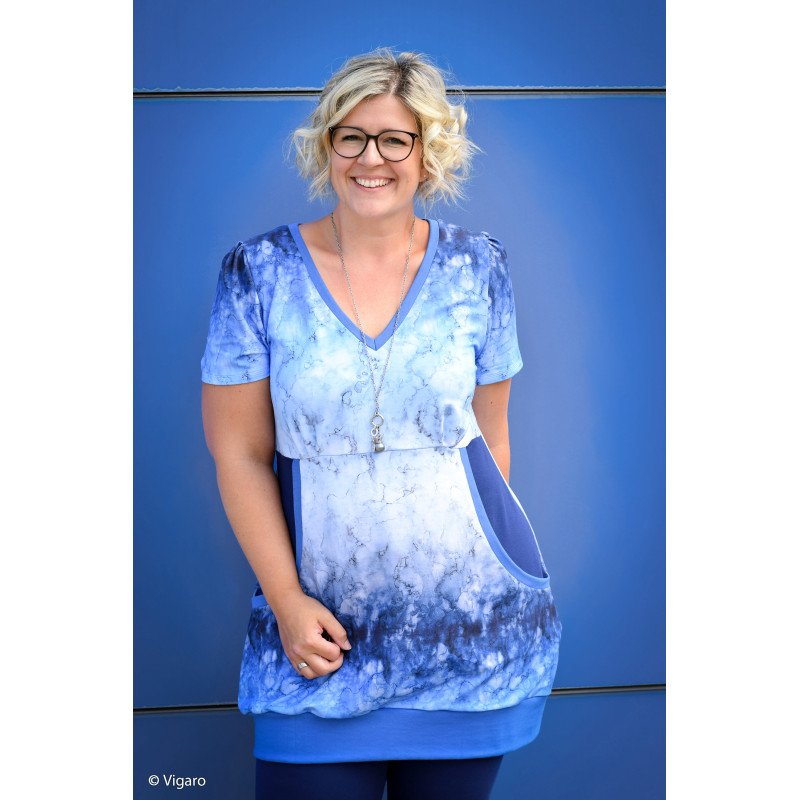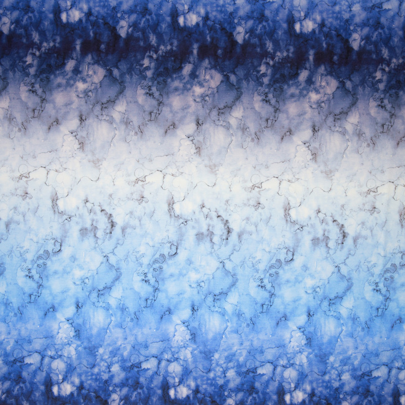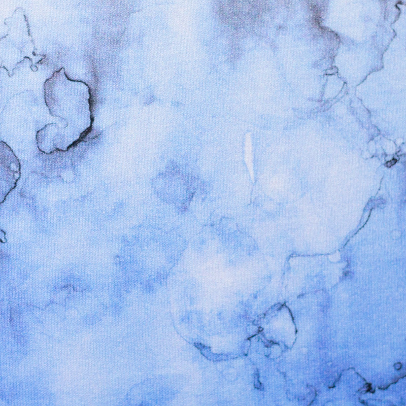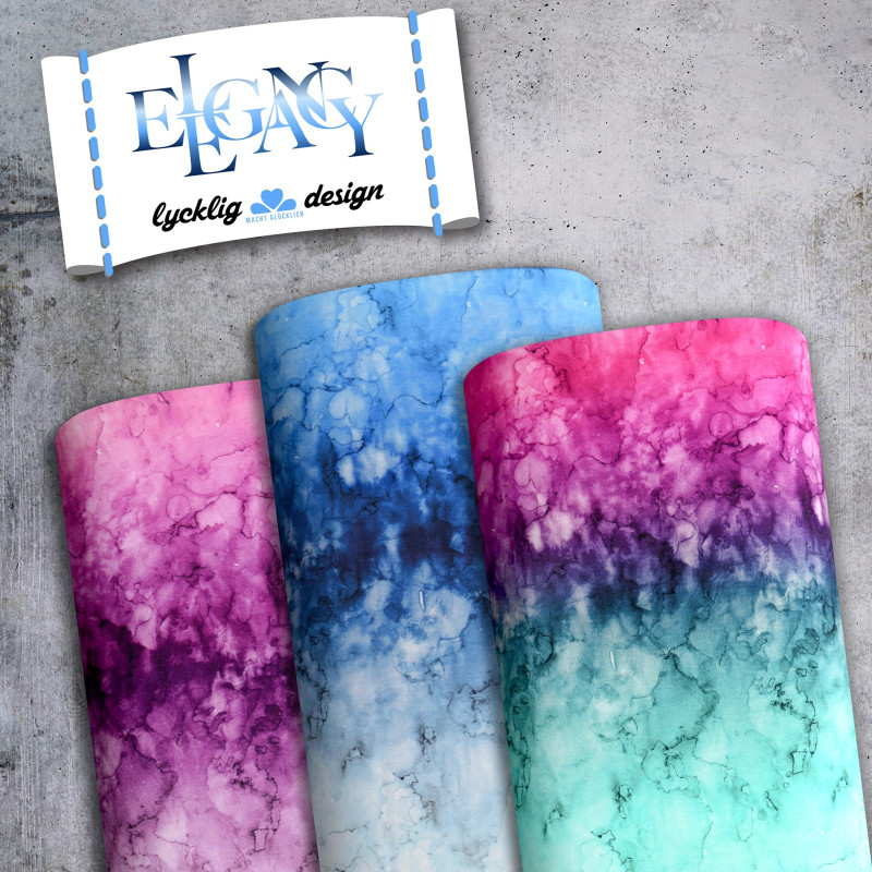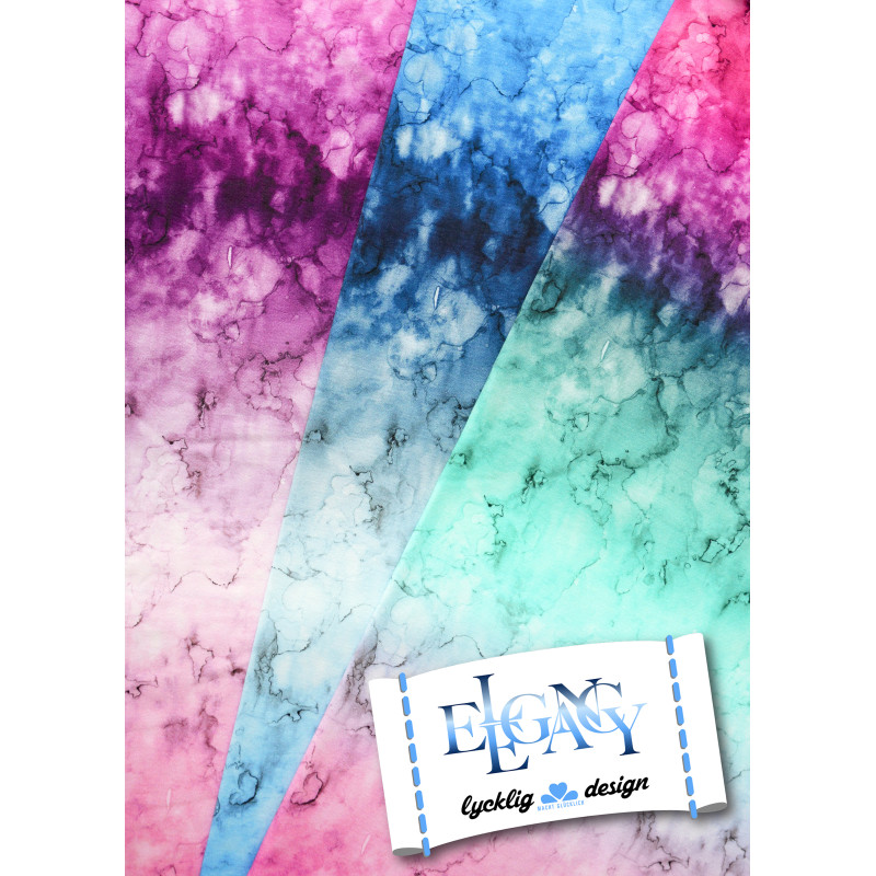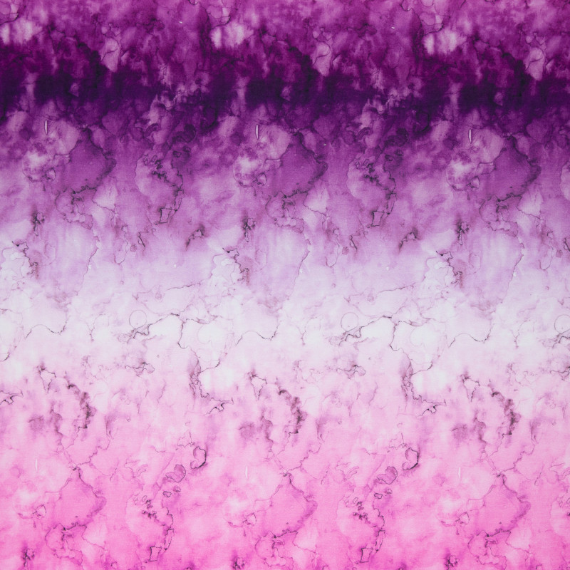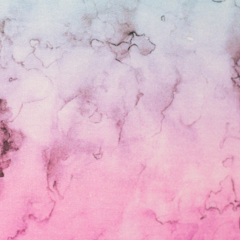 Den marmorierten Modalsweat Elegancy gibt es in drei Farbstellungen: Mit Farbverlauf Ton in Ton in verschiedenen Blautönen oder in Rosa-Beere sowie im ausdrucksstarken mehrfarbigen Farbverlauf Mint-Pink-Lila. Es handelt sich nicht um Panels, sondern um fortlaufende Muster!