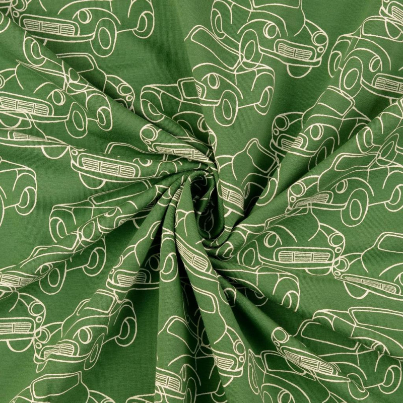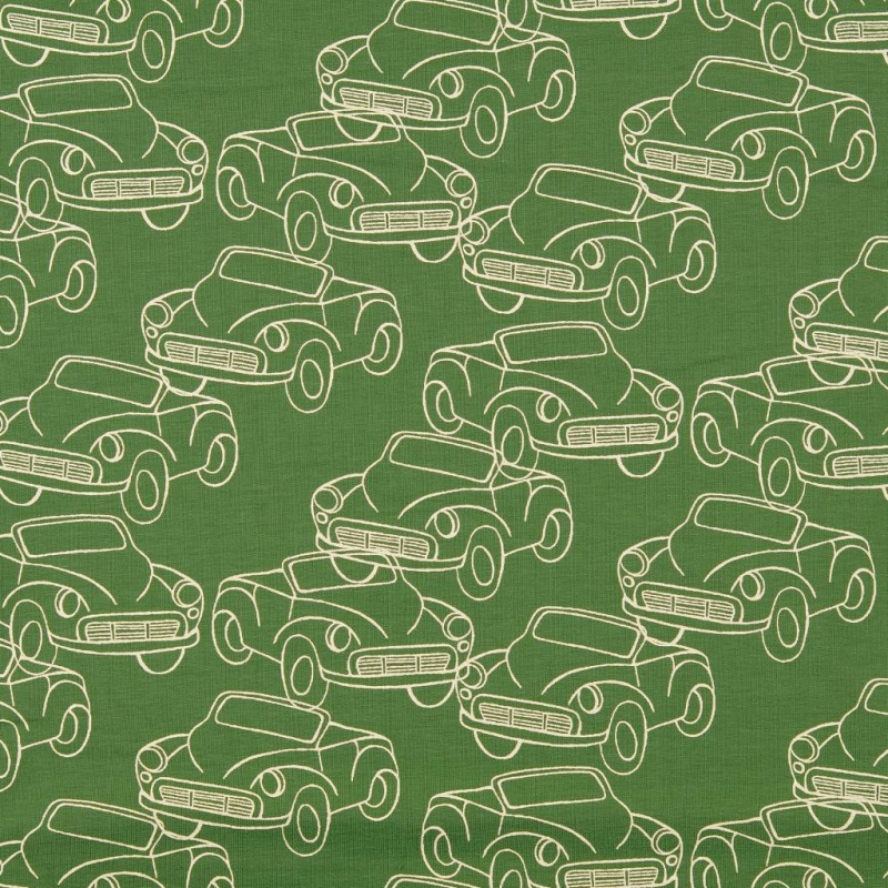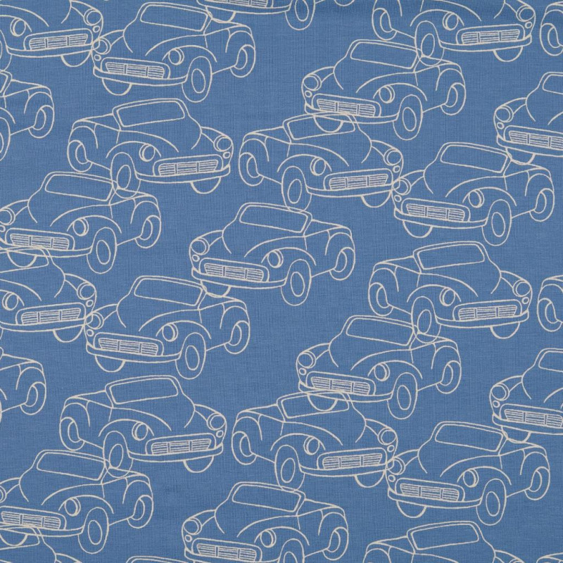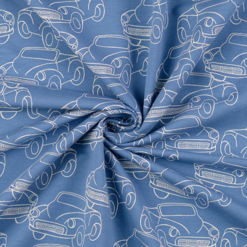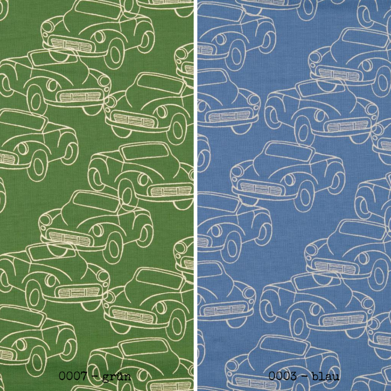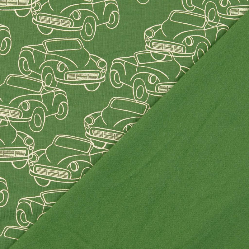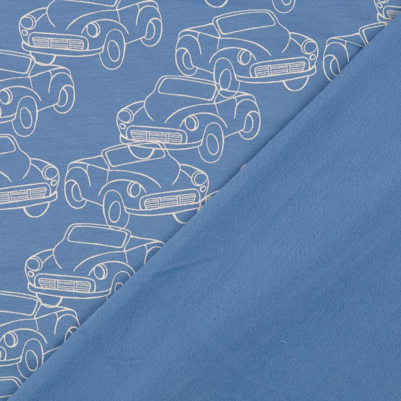 Dieser French Terry mit gerauter Rückseite ist mit Cabrios im Comic-Stil bedruckt. Ideal für Hoodies, Hosen oder sonstige Nähprojekte. In zwei Farbvarianten erhältlich.