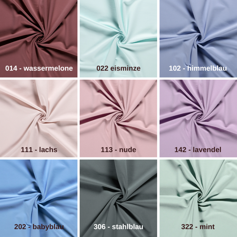 Natürlich habe wir auch die farblich passenden Uni-Jersey, -Sweat und Bündchen.