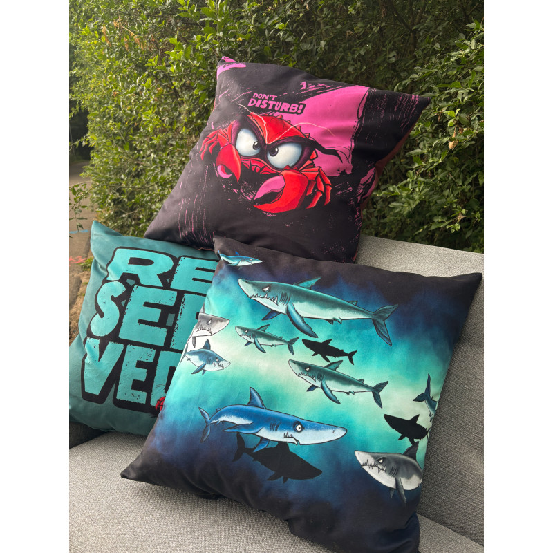 Die neue Kollektion "Salty Pillow" von Thorsten Berger besteht aus drei Samt-Kissenpanels (2x Krabbe, 1x Shark).